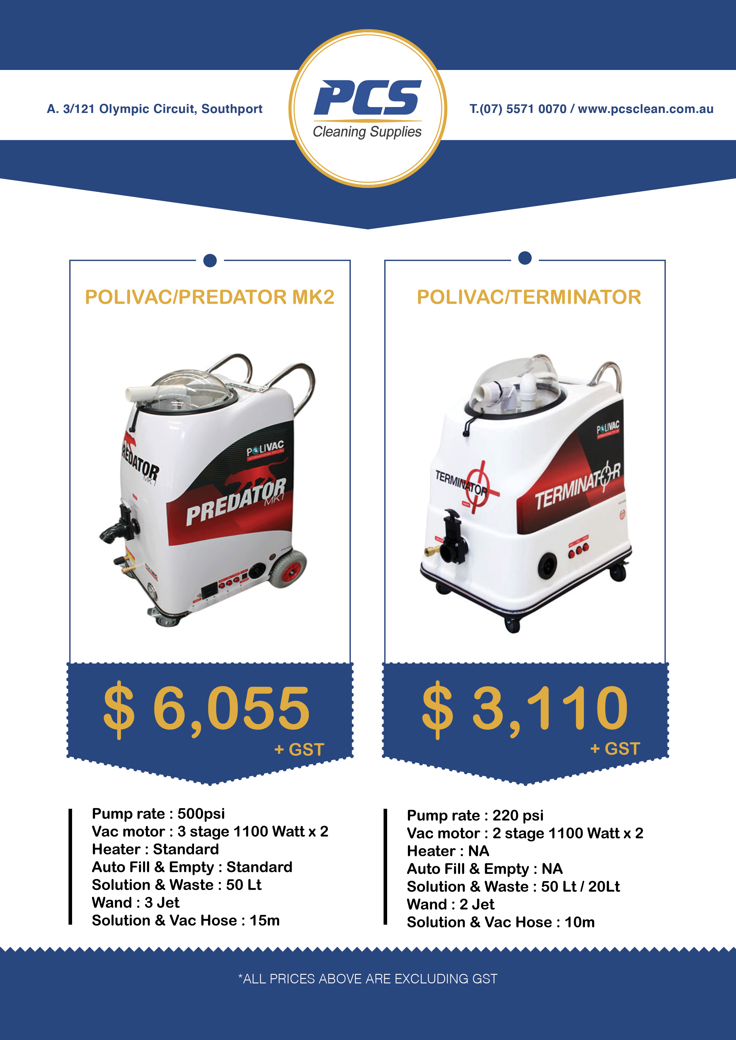 - 50 litre (11gals) solution and recovery tanks